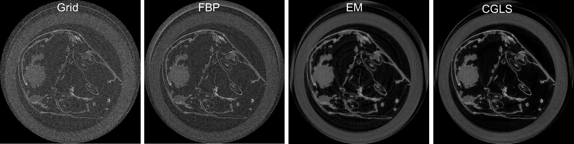 图2 不同重建算法得到的重建结果