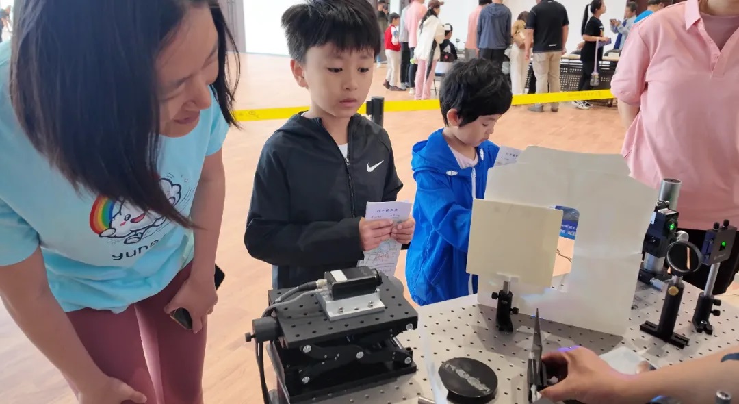 杨福桂副研究员等人员以光丈发,设计互动的小实验,请公众亲身参与HEPS应用原理小实验,利用光的衍射测量头发丝的直径;另外,年轻的科研人和学生也利用实验室的设备,与公众互动,请公众了解HEPS,了解科学,了解书本里的公式如何转化为大国重器,揭开大国重器的神秘面纱。