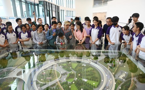 图为观众参观高能同步辐射光源沙盘原理模型。