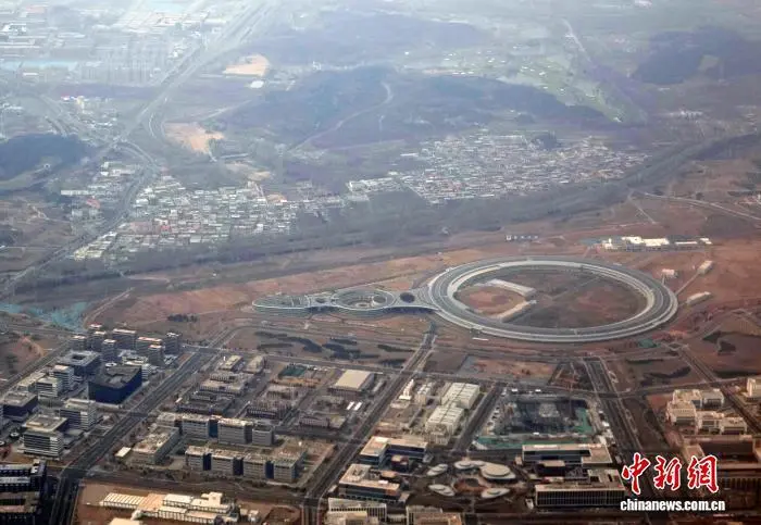 资料图:客机空中航拍高能同步辐射光源(HEPS)全景,预计2025年底启动试运行。中新网记者 孙自法 摄