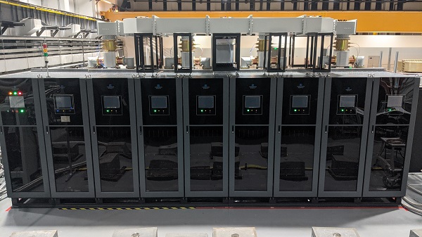 高功率子系统是高频系统的动力源,其功能是产生、传输和向高频腔内馈送特定工作频率的微波功率。它包含了功率源、功率传输和功率耦合器三个组成部分。HEPS储存环采用5台166.6MHz/260kW固态功率源和2台500MHz/260kW固态功率源,增强器采用6台500MHz/100kW固态功率源。HEPS建成后将是世界上使用固态功率源总功率最高的光源装置。166.6MHz/260kW全固态功率源样机,采用8合1同轴合成器,将8台功率源子机合成输出260kW额定功率。500MHz/150kW全固态功率源采用多级功率合成的方式,整机由8台功率源子机通过同轴合成器、波同转换和波导合成器实现功率合成。项目组通过和厂家进行联合技术攻关,解决了高密度功放插件冷却、大功率电流谐波抑制、大功率合成等诸多技术挑战,同时克服了由于疫情导致的各种影响,功率源样机于2021年8月完成出厂验收,运抵怀柔PAPS现场,进行安装和测试,经过长时间拷机,运行稳定,达到了设计指标,为HEPS批量功率源的制造奠定了坚实的基础。