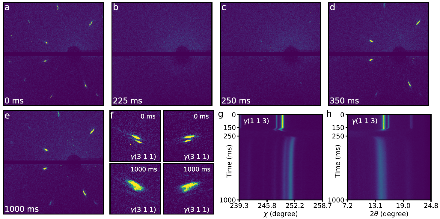 图1,镍基单晶高温合金激光快速熔凝过程中的X射线Laue衍射时间序列图谱