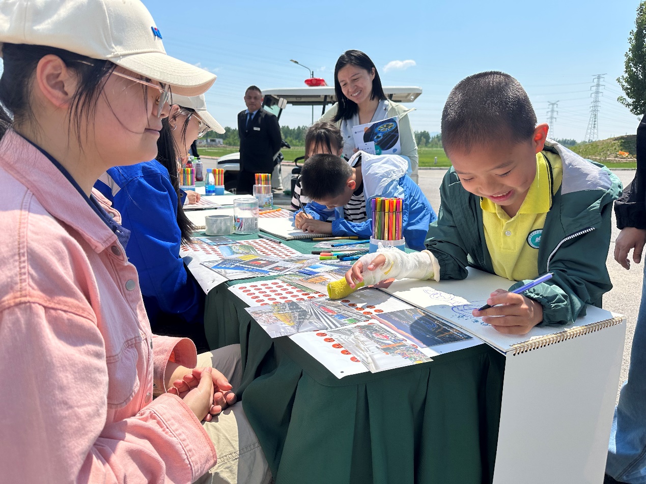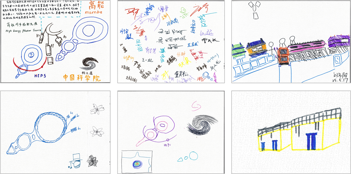 为了让公众更直观感受大装置,此次活动开放HEPS原理沙盘、实验大厅、长线站多个打卡点位,通过志愿者通俗生动的讲解,请公众了解HEPS的原理,亲身感受HEPS的建设成果。本次活动,北京大学、怀柔二中、怀柔二小、怀柔庙城学校、怀柔索兰诺国际学校、青苗国际学校的师生亲身走近HEPS光束线站,听志愿者讲解了X射线吸收谱学、通用环境吸收谱学、光学测试、高分辨纳米电子结构等光束线站的原理和应用,同学们深入接触HEPS最真实的科研现场,亲身体验了中国科技之美,在长线站打卡点,小朋友们现场写生,画出感受到的光源。