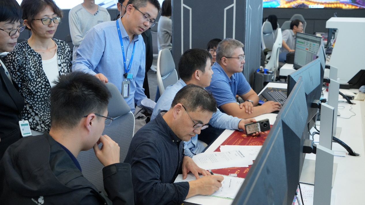 随后,专家组对HEPS加速器能量、流强、发射度、束流轨道稳定性、亮度以及X射线能量等验收指标进行了现场测试。专家组的测试结果如下:储存环束流能量6.01千兆电子伏,束流水平自然发射度0.0568纳米·弧度,束流强度100.5毫安,束流轨道稳定性即垂直方向轨道变化的均方根值小于束团垂直均方根尺寸的19.8%,亮度4.00×1021 phs/s/mm2/mrad2/0.1%BW(每秒每平方毫米每平方毫弧度及千分之一带宽内光子数),X射线能量峰值349.57千电子伏,具备提供能量达300千电子伏X射线的能力。