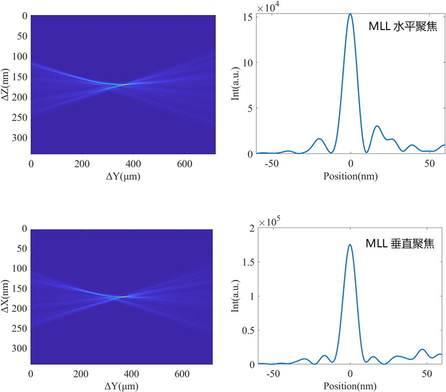 硬X射线纳米探针线站:HEPS研制多层膜劳埃透镜的水平、垂直聚焦散焦图(第三次现场测试数据),水平聚焦半高宽10.5nm,垂直聚焦半高宽12.6nm