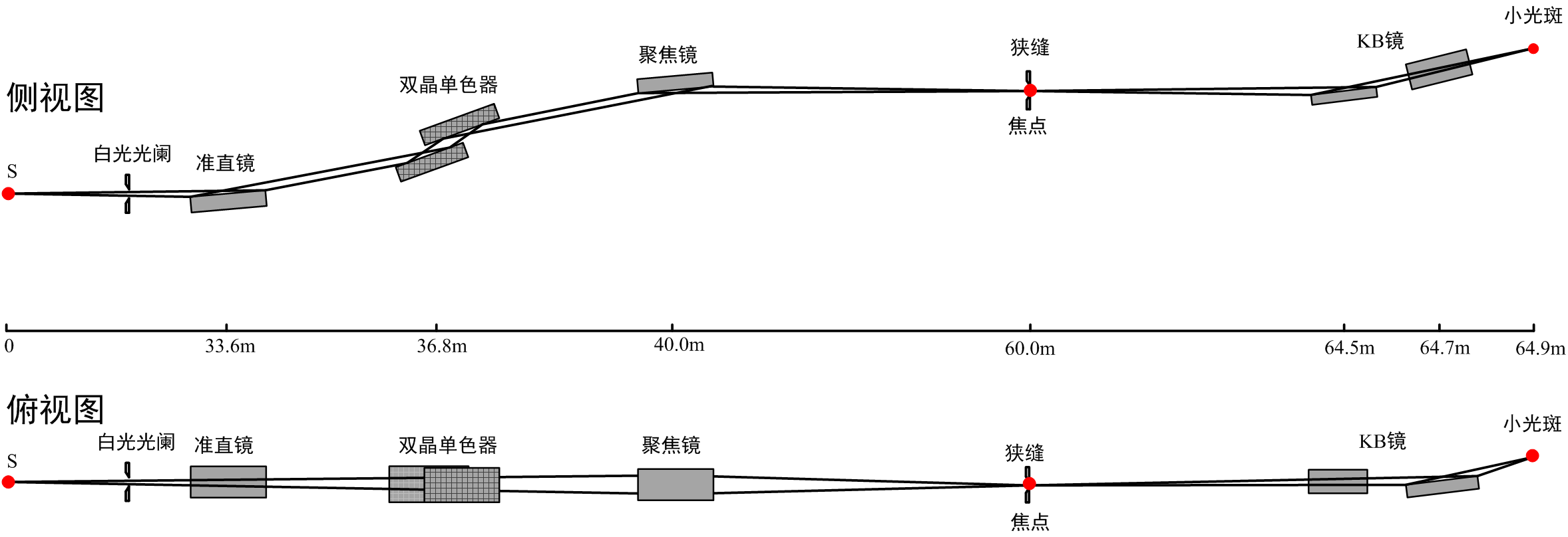 实验站后面配置KB聚焦镜,将光斑大小再次聚焦到13μm*14μm,工作距离200mm,适合小焦斑实验测试。