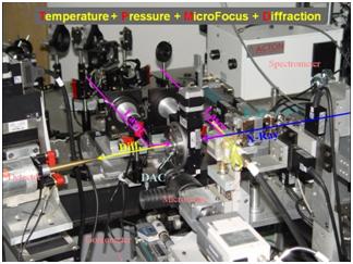 能量色散衍射实验、角色散衍射实验方法与激光加温方式结合,可以得到样品在高温高压条件下的各种信息,比如结构变化、熔化曲线等。