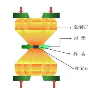 压强的基本原理公式为:P=F/S。如图5所示,在高压实验中,通过挤压上下两颗金刚石,从而使样品处于高的压强环境。