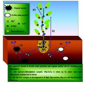 揭示了硫代硫酸铵诱导植物后,汞可能与硫结合在一起并进行转运,最终形成稳定的硫化汞。这个结果让植物修复学家感到振奋,因为汞具有很强的挥发性,植物修复学家担心汞进入植物体后,会通过植物叶片向大气挥发,产生二次污染。植物体内汞以硫化汞形态存在,避免了汞的挥发。