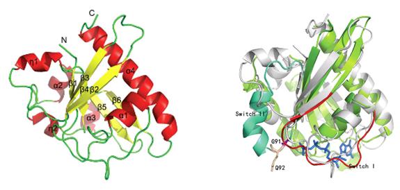 图1Cdc73 C-terminal 卡通结构图 图2Cdc73与Rab33B结构比对图