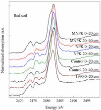 硫(S)是土壤中继氮、磷、钾之后位居第四重要的植物必需的营养元素。在土壤中硫以多种价态、多种形态同时存在,并易受环境氧化还原电位及土壤前处理方式影响其赋存形态和有效性。利用同步辐射X-射线吸收近边结构(S K-边XANES)光谱技术可以直接分析新鲜土壤样品、原位表征硫素在土壤中的真实赋存形态,避免前处理方式以及化学提取过程中对硫素赋存形态和分布可能带来的干扰。通过应用XANES光谱结合化学分级提取技术,中国科学院生态环境研究中心环境化学与生态毒理国家重点实验室的一个研究组深入研究了硫素在长期施肥土壤中的形态分布和转化特征,为解析硫素在土壤中的赋存形态及转化过程提供了直接的证据。相关研究成与2016年5月发表在《European Journal of Soil Science》上。