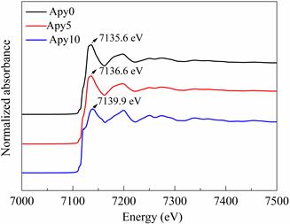 利用北京同步辐射装置(BSRF)X射线吸收谱技术对水热合成的含砷黄铁矿进行了表征分析,从Fe K边XANES光谱可知,随着As掺入量的增加,黄铁矿中Fe(III)含量增加。这一结果给含砷黄铁矿和As(V)的氧化还原机理提供了数据支撑。本研究有助于更好地理解含砷黄铁矿和砷酸盐在表生环境中的相互作用机制。