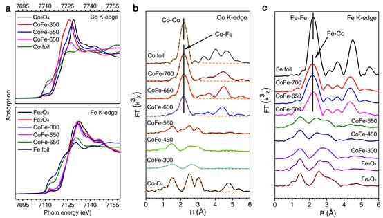 图2. 利用北京同步辐射装置(BSRF)X射线吸收谱技术证明CoFeAl-LDH随还原温度升高的结构演变