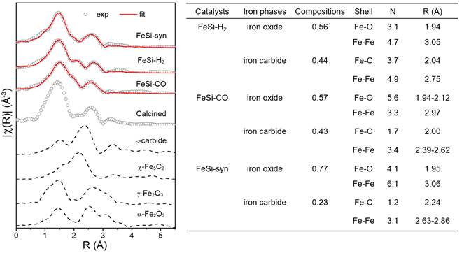 通过与北京同步辐射装置(BSRF)的合作,利用1W1B XAFS线站测试了不同碳化铁催化剂的近边结构和扩展边结构,分析了铁的物相组成和配位结构等信息,揭示了催化剂的基本性质,为结构性能关系的建立提供了依据。