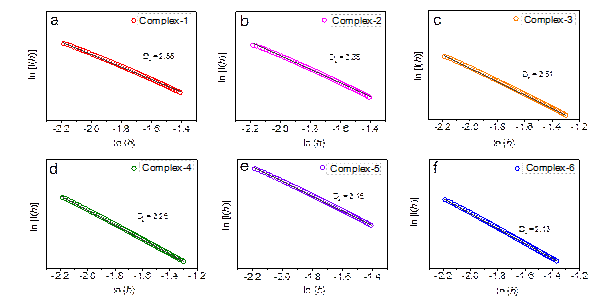 由于前驱体- Cu配合物是生成树枝状Cu-Cu2O的关键。他们利用同步辐射光源获得了前驱体分形结构解析,研究了配体种类对Cu配合物粗糙度的影响(图2从小角X射线散射(SAXS)结果可知,电化学原位法制备的Cu配合物中存在表面分形(Ds),说明配合物表面粗糙。结果显示,Cu配合物-1具有较大的粗糙度,更有利于生成树枝状Cu-Cu2O,增大电极的比表面积。