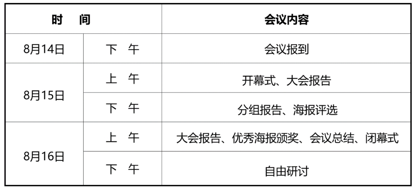 时间: 2024 年 8 月 14 日报到, 8 月 15 日- 16 日会议