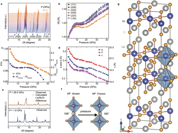 图2. La3Ni2O7高压下的同步辐射测量及结构分析。