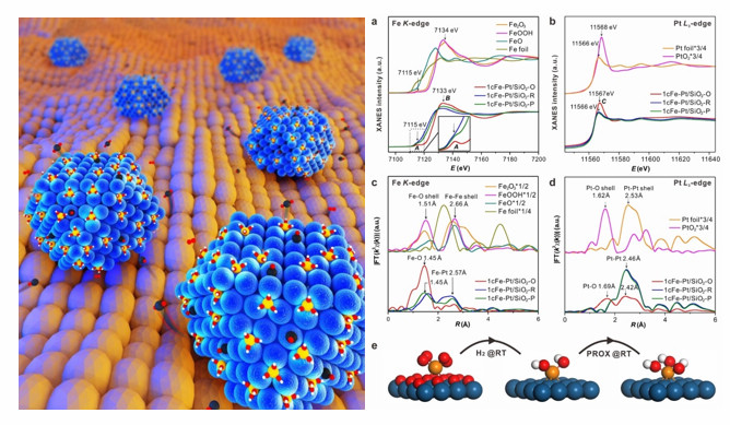 1月31日,BSRF用户中国科学技术大学韦世强教授等课题组在 nature杂志发表了氢燃料电池的新型催化剂文章“Atomically dispersed iron hydroxide anchored on Pt for preferential oxidation of CO in H2”,研究人员利用原子层沉积技术,首次在SiO2担载的Pt金属纳米颗粒表面上精准构筑出单位点Fe1(OH)x物种,进而形成了一种新型的Fe1(OH)x-Pt单位点界面催化剂结构。在富氢氛围一氧化碳氧化反应中,他们利用该催化剂首次在-75°C至110°C的超宽温度区间,成功实现了100%选择性地一氧化碳完全去除,突破了现有的一氧化碳氧化反应中,催化剂工作温度高和温区窄的两大瓶颈限制,为解除氢燃料电池一氧化碳“中毒休克”危机,延长电池寿命,拓宽电池使用温度环境以及其民用推广等方面扫清了重大障碍。