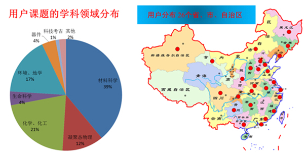 图1 本次开放运行用户课题的学科分布示意图(左)及用户分布示意图(右)。