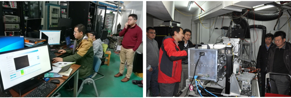 图2 1W2B-衍射谱学综合实验站:(左)用户正在收集实验数据:(右)HEPS-TF高性能X射线二维像素阵列探测器系统工艺测试现场。