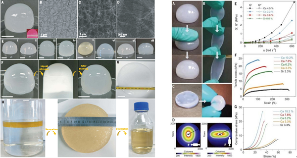 图1. Ca-POM纳米线-有机液体凝胶。 图2. 纳米线-辛烷凝胶的弹性展示,散射图像和力学性能。
