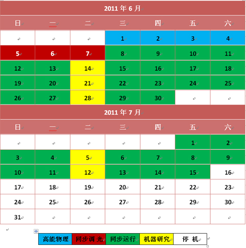 2011年6月8日-7月15日 BSRF运行工作表