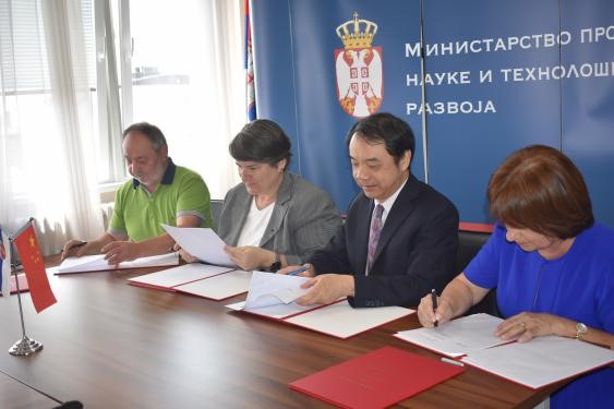 12日,王贻芳代表高能所与塞尔维亚万卡核物理研究所所长Zlatko Rakocevic、贝尔格莱德大学校长Ivanka Popovic、克拉古耶瓦克大学校长Nenad Filipovic签署联合合作协议。签署仪式在塞尔维亚教育、科技与发展部举办,塞尔维亚教育、科技与发展部部长Mladen Sarcevic,教育、科技与发展部国务秘书Vladimir Popovic,中国驻塞尔维亚大使馆一秘史义等出席签约仪式。