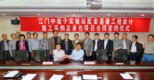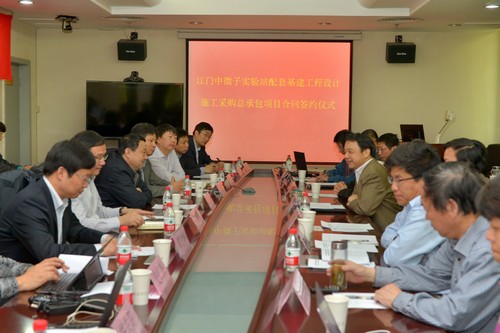 4月16日,江门中微子实验站配套基建工程总承包项目合同签约仪式及土建与科研需求讨论会在高能所举行,高能所所长王贻芳、副所长罗小安及项目组成员,江门中微子实验监理清华大学教授邵贝贝,黄河勘测规划设计有限公司副总经理许人、工程院院长牛富敏,中国水利水电第六工程局有限公司水电六局副局长祝郴阳、河南锦源建设有限公司董事长邓文朴等领导和专家出席了本次会议。