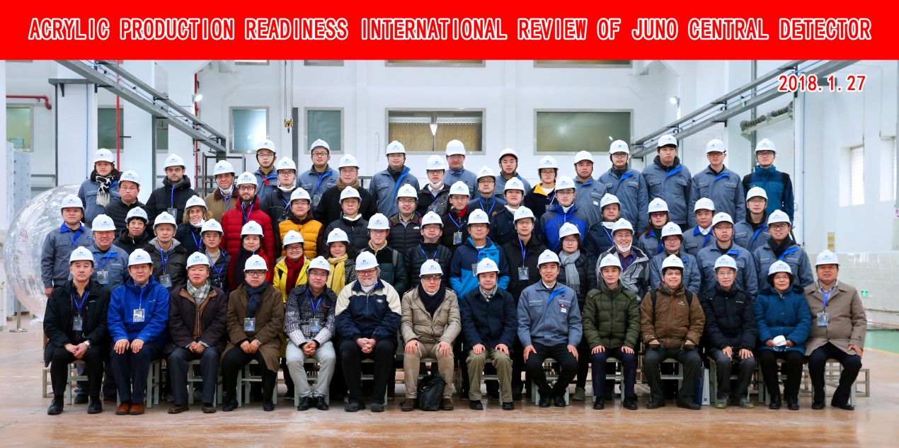 2018127日至28日,江门中微子实验(JUNO)中心探测器有机玻璃球生产国际评审会在泰兴召开。12位来自加拿大、美国、意大利、中国台北及国内的物理、探测器、有机化学、材料力学领域的专家学者组成专家组参加了评审。中共泰兴市委副书记张坤、JUNO项目经理王贻芳、有机玻璃球生产制造厂家汤臣新材料公司董事长汤月生、JUNO项目监理、JUNO指挥部与合作组EB部分成员、中心探测器项目组人员及厂家管理技术人员等共80余人参加了此次会议。泰兴市委副书记张坤致欢迎辞,他希望汤臣把参与国家重点实验的核心部件的制造,作为企业创新发展的一次重大考验和展示企业综合实力的良好机会,全力投入完成制造任务。