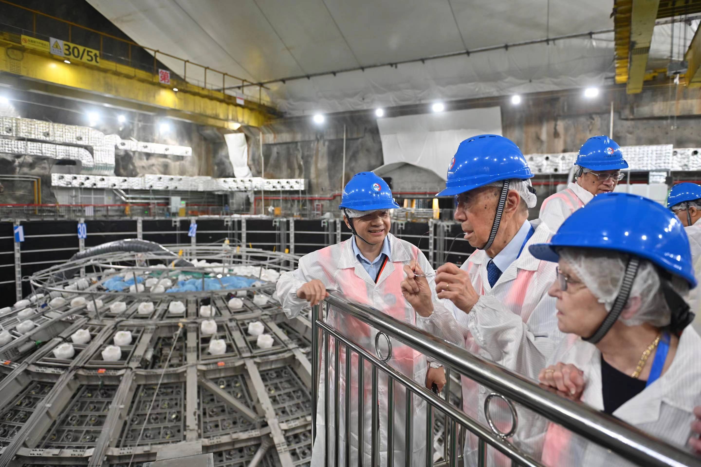 522日,1976年诺贝尔物理学奖获得者、中国科学院外籍院士丁肇中先生、“一带一路”国际科学组织联盟(ANSO)主席、中国科学院原院长白春礼院士一行访问江门中微子实验室。快盈v3所长王贻芳院士、陈和生院士、上海光源科学中心主任赵振堂院士、中国科学院广州分院院长陈广浩、广东省科技厅副厅长吴世文、江门市委书记陈岸明、常委蔡德威、开平市委书记余中华等陪同访问。