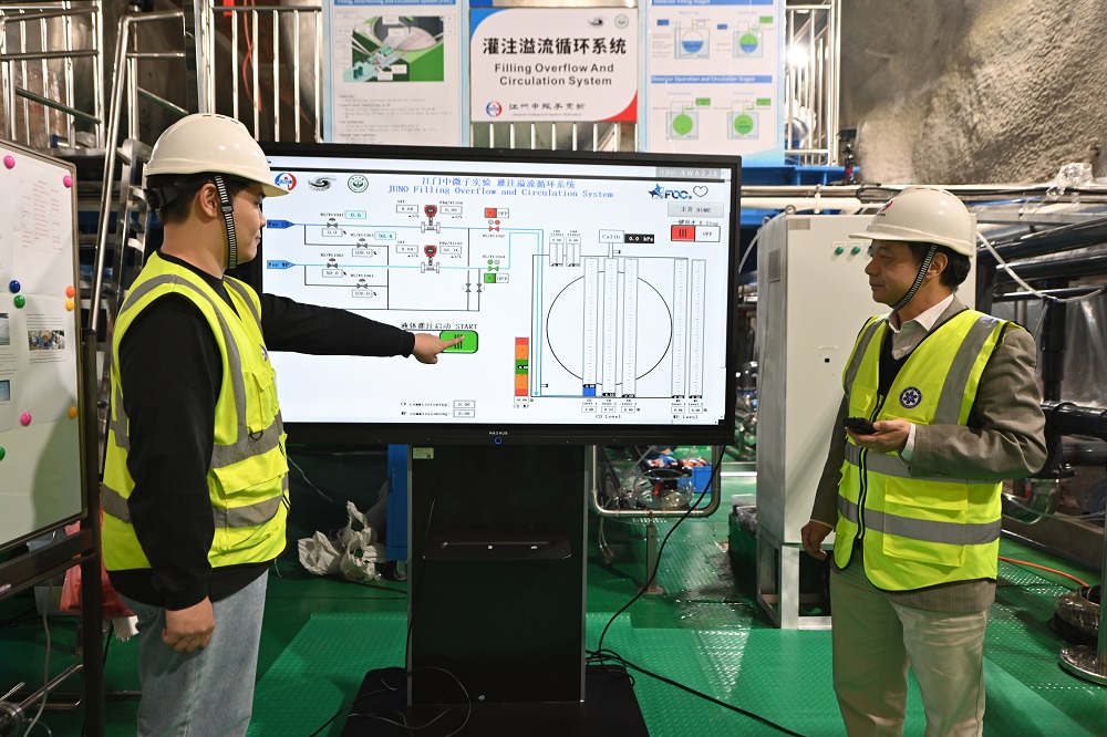 液体灌注分两步走,前2个月将超纯水灌满中心探测器有机玻璃球内外空间,再用6个月将有机玻璃球内部的超纯水置换为液体闪烁体。预计2025年8月完成全部灌注任务,开始正式运行取数。