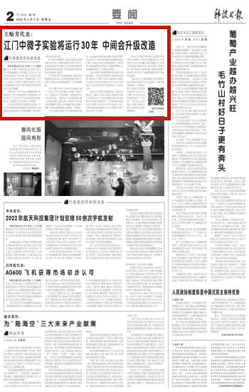 【科技日报】王贻芳代表:江门中微子实验将运行30年 中间会升级改造
