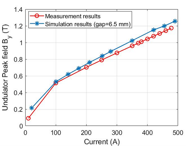高能物理研究所近期实验的15mm周期样件为超短周期超导波荡器。6.5 mm左右磁间隙下初步测试最大励磁电流475A,峰值磁场达到1.18T,符合理论预期。超导波荡器低温传导冷却技术得到充分验证,在线圈冷却、接头温控、失超恢复等方面获得重要经验,磁铁最低温度达到3K,漏热控制在0.3W以下,满足实验要求。