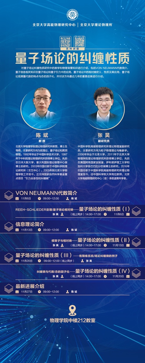 图 3在北京大学高能物理中心讲授量子场论中的纠缠问题专题系列课程的海报。