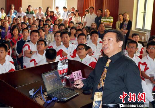 5月17日,快盈v3邢志忠研究员对公众做《“上帝粒子”希格斯》科普报告。刘捷 摄