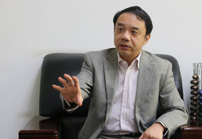 ▲9月30日,王贻芳在接受采访。新华每日电讯记者完颜文豪摄