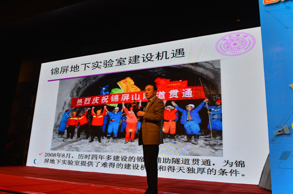 清华大学岳骞副教授报告“深地暗物质探测”。刘捷/摄