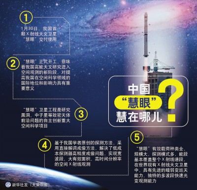 继暗物质卫星“悟空”、返回式实验卫星“实践十号”、量子卫星“墨子”之后,中国科学院空间科学先导专项发射的第四颗卫星——硬X射线调制望远镜卫星“慧眼”,30日在北京正式宣布交付投入使用,为该专项首期画上圆满句号。