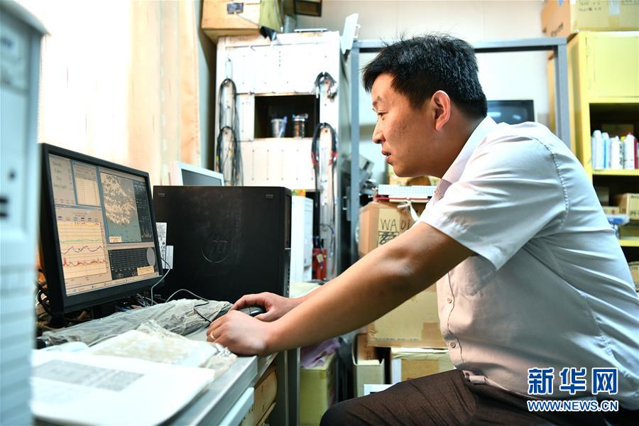 7月2日,项目组成员刘茂元在西藏羊八井查看数据。 新华社记者 李鑫摄