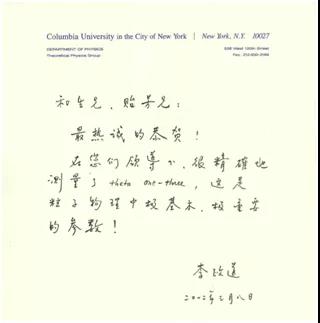 2012年3月,大亚湾实验组获得了首批数据,准备发布重大结果。经过讨论,合作组同意把即将投稿的文章发给李先生过目,以表达我们对他最大的敬意及感谢。他是合作组外看到文章的第一人。李先生看完文章后立即发来了贺信,并以让人极度不安的方式对我们这些晚辈表达了鼓励。从中我们也看到了李先生的人品、修养和气度。