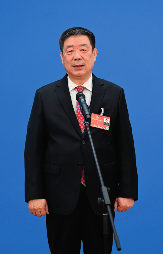 2022 年 3 月 4 日,全国政协十三届五次会议第一场“委员通道”采访活动中,全国政协委员、中国载人航天工程总设计师周建平通过网络视频方式接受媒体采访 金良快摄 / 本刊