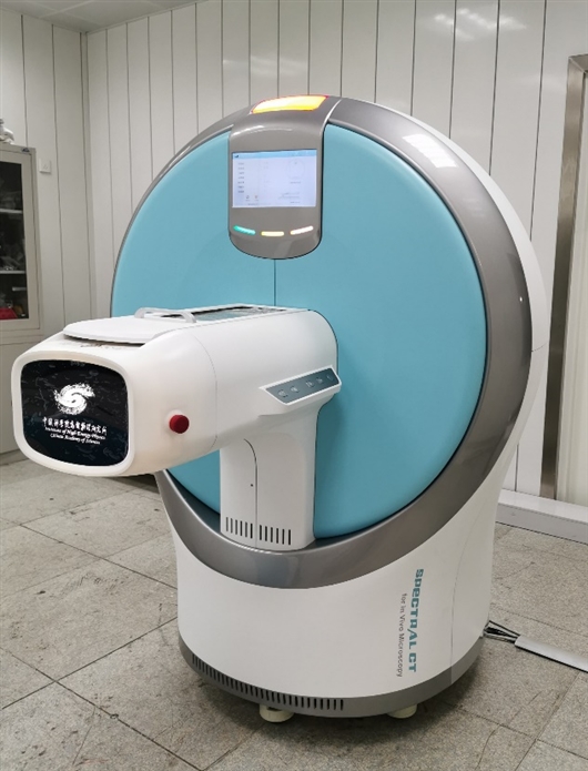 随着临床前研究向着活体成像、高分辨成像、多模成像等应用发展,传统的显微CT技术已无法满足生命科学领域的研究需求。近年来,基于光子计数探测器的能谱CT已成为当前CT新技术的重要发展方向,高分辨X射线能谱CT成像技术正在快速发展。在中科院装备研制等项目的支持下,项目团队研发出国际首台小动物活体能谱显微CT设备,通过以微米级分辨及多能谱图像再现动物体内的各器官组织的精细结构,实现动物实验从离体到活体、从黑白到彩色的进步,为生物医学研究提供更为先进的实验手段和科学仪器。
