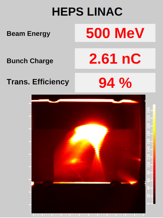 焦毅:首先它有一个电子枪,可以把它想象成一把机关枪,它在突突地往外吐“炮弹”,这个“炮弹”就是电子束。这次一方面是直线加速器满能量出束,束流能量达到500兆电子伏特,另一方面是它的电荷量到了2.5纳库以上。所以这个束团里面大概有10的10次方电子,同时发光需要的电子足够多,它的光也会足够亮、足够强。直线加速器的调束其实是整个光源工程的节点,它的启动表明我们过往的这些技术、安装、基建、硬件的设计,包括测试和联调,性能都是很好的,达到了标准。