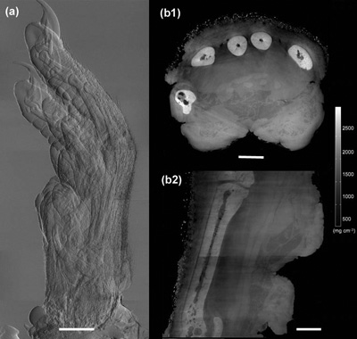 BSRF工作人员提出X射线相位衬度成像普及应用解决方案,图为低剂量、快速X射线相位CT实验结果,样品为大鼠爪