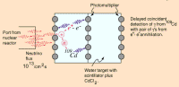 1956年,美国科学家莱因斯(Frederick Reines,1918-1998)和考恩(Clyde Lorrain Cowan,1919-1974)(左图)用核反应堆发出的反中微子与质子碰撞,第一次直接证实了中微子的存在(右图)。