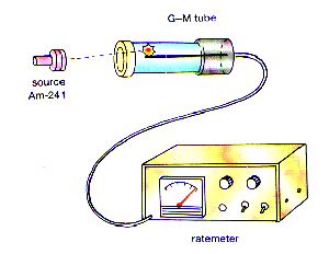 盖革-米勒计数器是根据射线能使气体电离的性能制成的,是最常用的一种金属丝计数器。两端用绝缘物质封闭的金属管内贮有低压气体,沿管的轴线装了金属丝,在金属丝和管壁之间用电池组产生一定的电压(比管内气体的击穿电压稍低),管内没有射线穿过时,气体不放电。当某种射线的一个高速粒子进入管内时,能够使管内气体原子电离,释放出几个自由电子,并在电压的作用下飞向金属丝。 这些电子沿途又电离气体的其它原子,释放出更多的电子。越来越多的电子再接连电离越来越多的气体原子,终于使管内气体成为导电体,在丝极与管壁之间产生迅速的气体放电现象。从而有一个脉冲电流输入放大器,并有接于放大器输出端的计数器接受。计数器自动地记录下每个粒子飞入管内时的放电,由此可检测出粒子的数目。