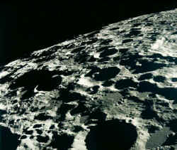 由于月球的引力小,大气密度约为地球海平面的1万亿之一,空气极为稀薄。正因为没有大气层的阻力,空中飞来的大小陨石毫无阻拦地与月球相撞,使月球伤痕累累,布满了环形山(右图)。没有空气传送声波,月球上万籁俱寂。月球本身并不发光,没有空气的散射,太阳光比在地球上看到的要明亮一百倍,但天空却永远一片漆黑。正因为没有空气,月球上没有蓝天白云,没有晴阴天之分。月球表面昼夜温差很大。