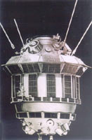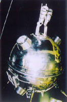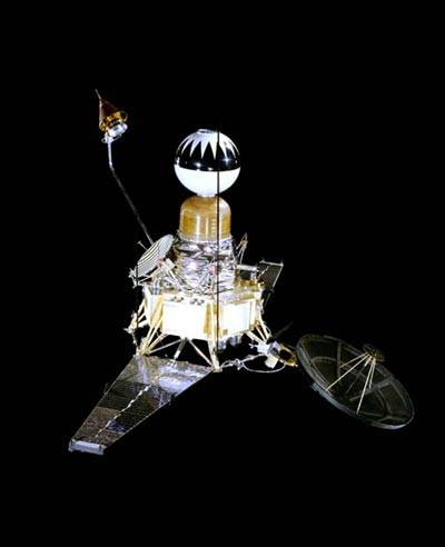 月球2号探测器(右图)于1959年9月12日发射升空,两天后飞抵月球,在月球表面的澄海硬着陆,成为到达月球的第一位使者,但它科学仪器舱内的无线电通信装置在撞击月球后停止了工作。