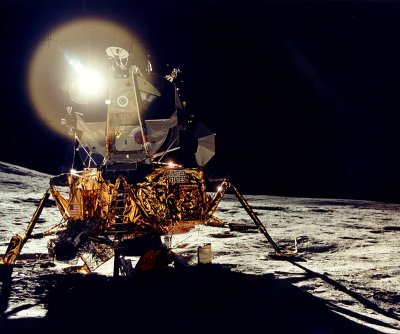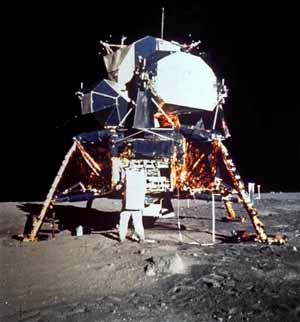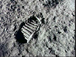 1969年7月16日上午(美国东部时间),在肯尼迪宇宙飞行中心发射了“阿波罗”11号飞船。7月20日晚,"阿波罗"11号登月舱的4条着陆支架终于安全落在被称为"静海"的月球上。美国宇航员阿姆斯特朗在月球上踏下人类的第一个足印(左图)。在此后2小时40分中,阿姆斯特朗和奥尔德林展开了太阳能电池阵,安设了月震仪和激光反射器,还采集了月球岩石和土壤的样品,还与美国总统尼克松进行了电视谈话。7月21日上午11时15分,登月舱飞离月面之后与绕月轨道上的飞船会合后安全返回。为纪念人类第一次登月成功,每年的7月20日定为“人类月球日”。