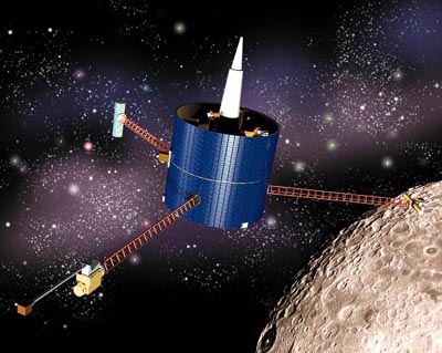 1995年3月,美国宣布了称为“月球勘探者”(Lunar Prospector)(左图)的月球飞行任务,这项计划耗资0.73亿美元。“月球勘探者”重约1956公斤,将被置于环月低高度(100公里)极轨道。携带的仪器有γ射线光谱仪、α粒子光谱仪、中子光谱仪、电子反射仪和磁强计,任务周期为一年。勘探者将对月球火山口的寒冷区和极区冰的含量进行测定,为今后有人基地的建立获取资料,还将完成月球表面化学成分的测定、月球全球磁场和引力场的测绘。